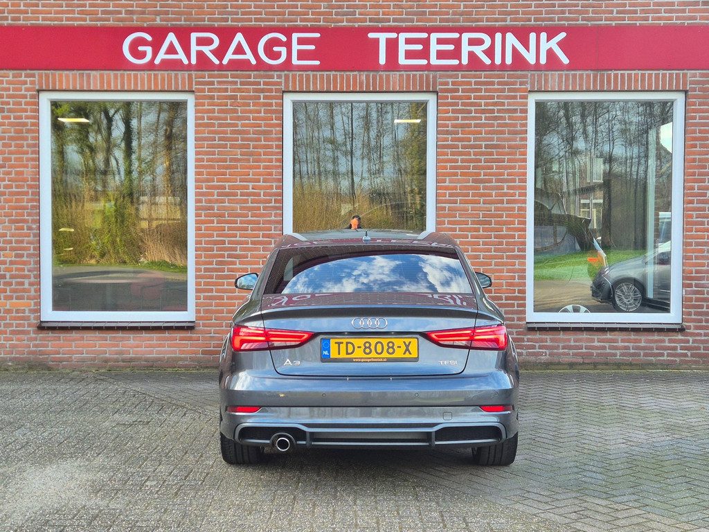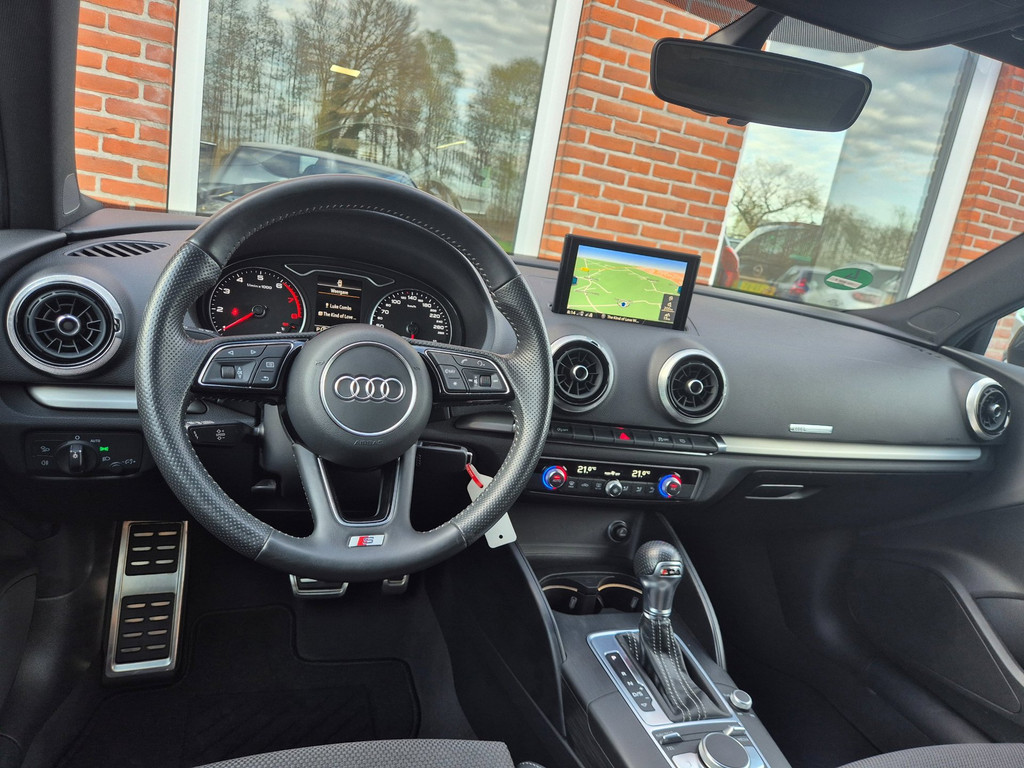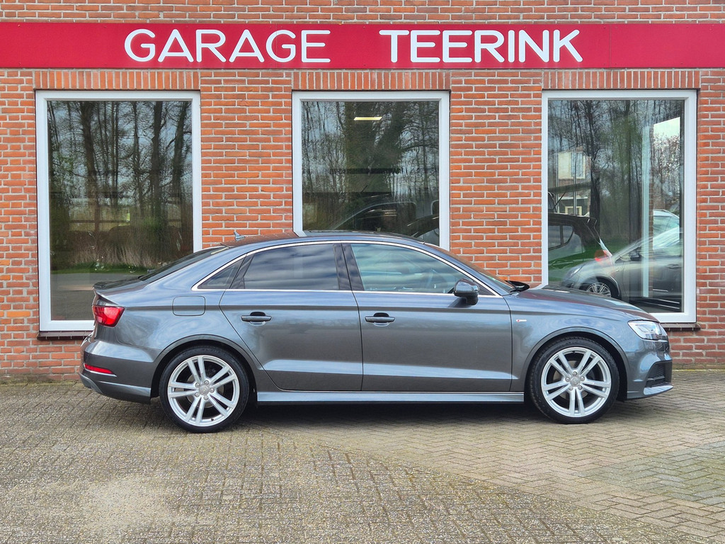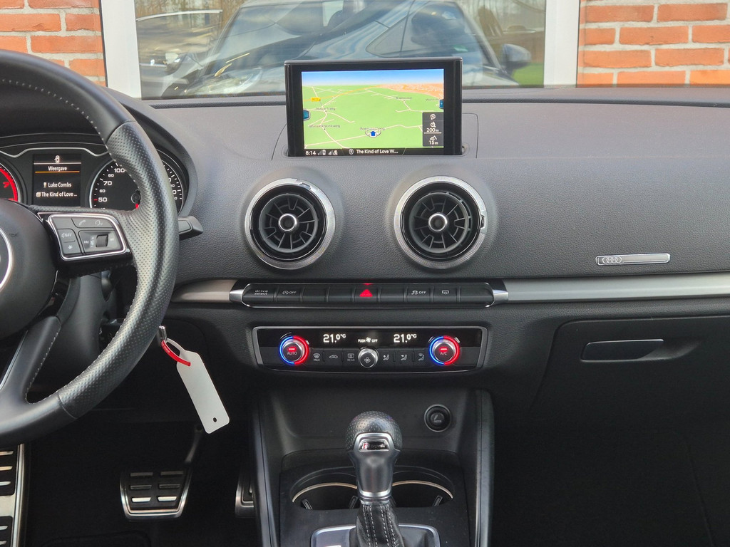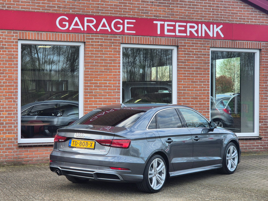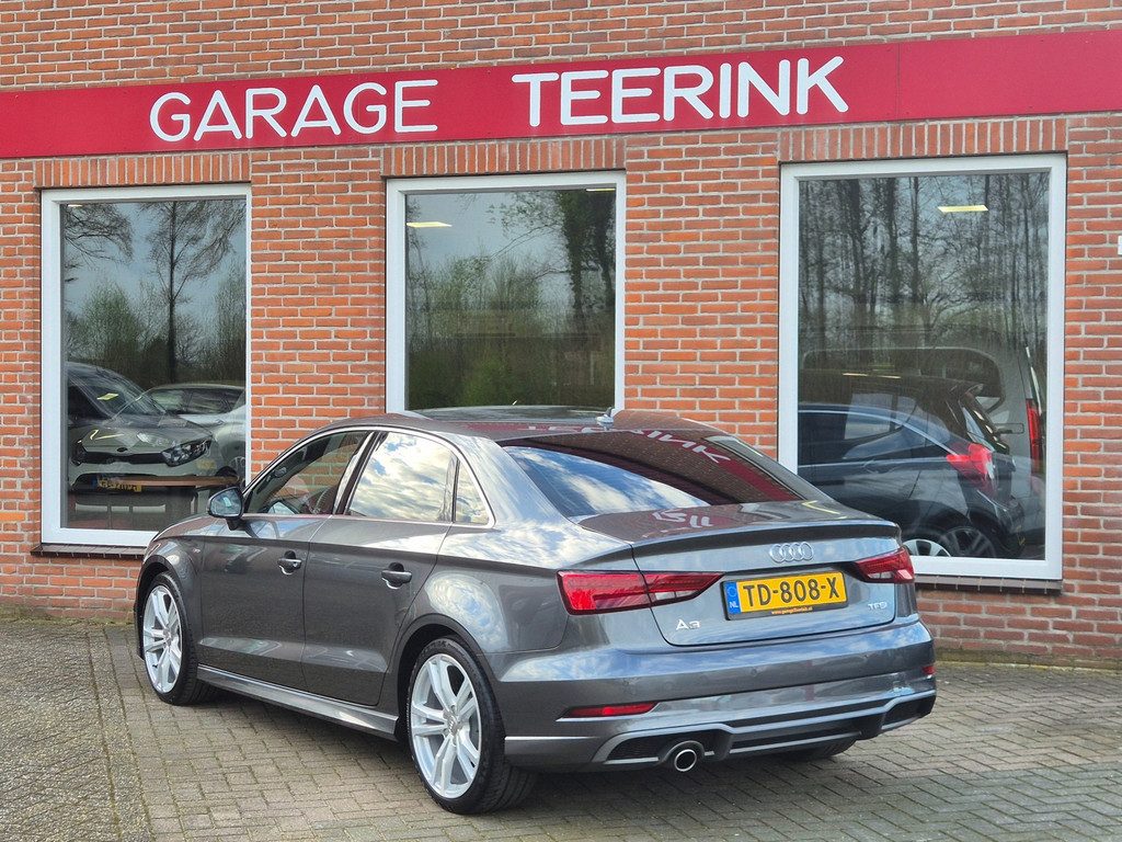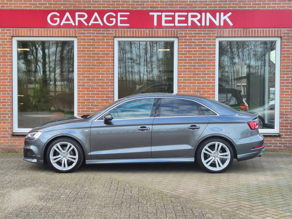 Zeer mooie en uiterst complete Audi A3 Limousine Sport S Line Edition automaat van tweede eigenaar. 100% dealer onderhouden auto die onder andere is voorzien van climate control (automatisch geregelde airco), cruise control, elektrische ramen voor & achter, centrale deurvergrendeling op afstand, parkeersensoren achter, in hoogte verstelbaar lederen stuur, regensensor, automatische matrix led koplampen, 18 inch lichtmetalen velgen, boordcomputer en een origineel navigatiesysteem met bluetooth carkit, usb aansluiting, radio/cd-speler en stuurbediening.