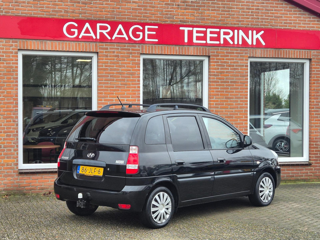 Mooie Hyundai Matrix van tweede eigenaar. Leuke auto met automatische versnellingsbak die onder andere is voorzien van airco, elektrische ramen voor & achter, centrale deurvergrendeling op afstand, elektrisch verstelbare buitenspiegels, in hoogte verstelbaar stuur met stuurbekrachtiging, mistlampen voor, isofix bevestiging voor kinderzitjes, trekhaak met 7 polige aansluiting en een radio/cd-speler met aux aansluiting.