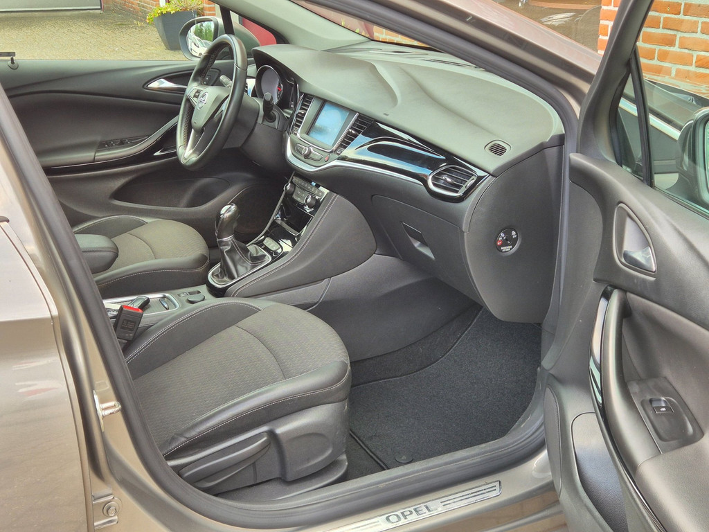 Mooie en uiterst complete Opel Astra Innovation van tweede eigenaar. Nederlandse auto die onder andere is voorzien van climate control (automatisch geregelde airco), cruise control met snelheidsbegrenzer, bots herkenning, keyless entry & starten, regensensor, automatische koplampen, parkeersensoren voor & achter, elektrische ramen voor & achter, 17 inch lichtmetalen velgen met nieuwe all season banden, rijstrooksensor, verkeersbordherkenning, in hoogte verstelbaar lederen stuur met stuurbekrachtiging, in hoogte verstelbare voorstoelen, trekhaak met 13 polige aansluiting en een originele radio met bluetooth carkit, aux/usb aansluiting, stuurbediening en navigatiemogelijkheden via Apple Carplay & Android Auto.