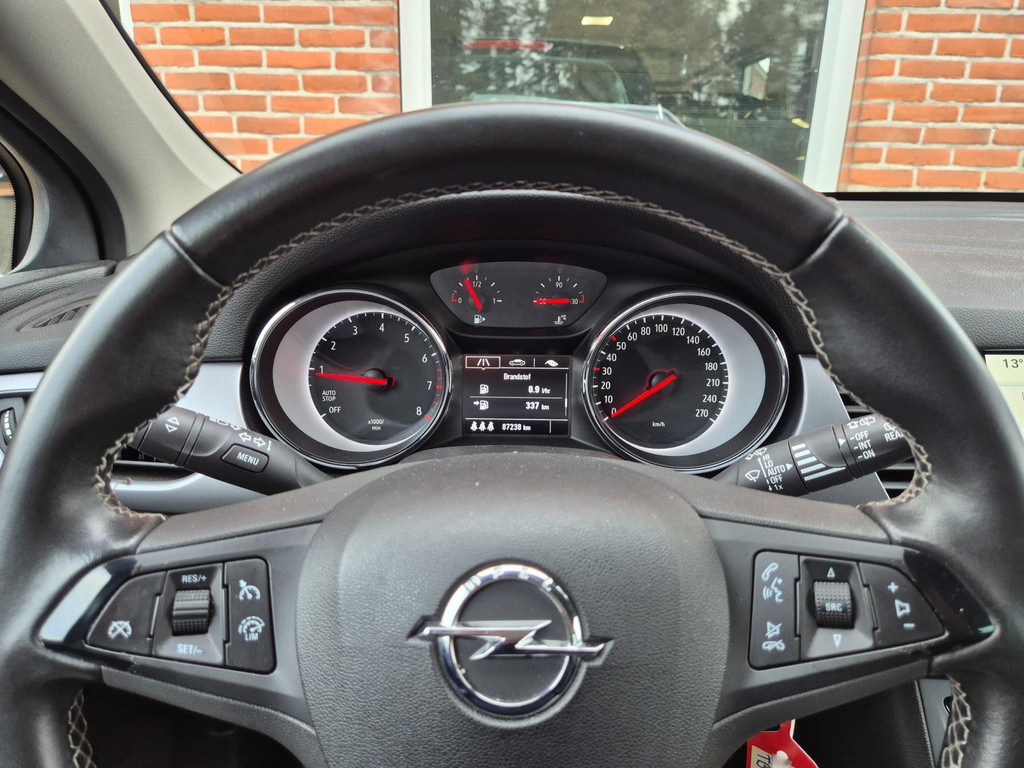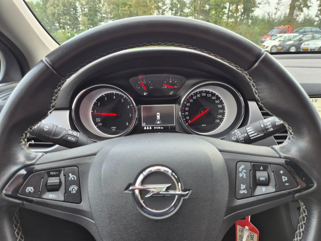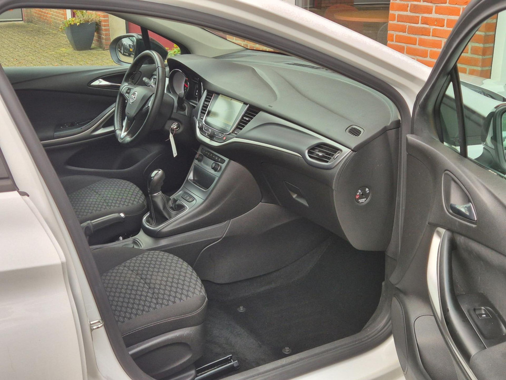Mooie, frisse, 100% dealer onderhouden Opel Astra Black Edition van eerste eigenaar. Complete auto die onder andere is voorzien van airco, cruise control met snelheidsbegrenzer, elektrische ramen voor & achter, centrale deurvergrendeling op afstand, 17 inch lichtmetalen velgen, regensensor, automatische dimlichten, parkeersensoren achter, afneembare trekhaak met 13 polige aansluiting en een origineel navigatiesysteem met bluetooth carkit, dab ontvanger, stuurbediening, aux/usb aansluiting en Apple Carplay & Android Auto koppelmogelijkheden.