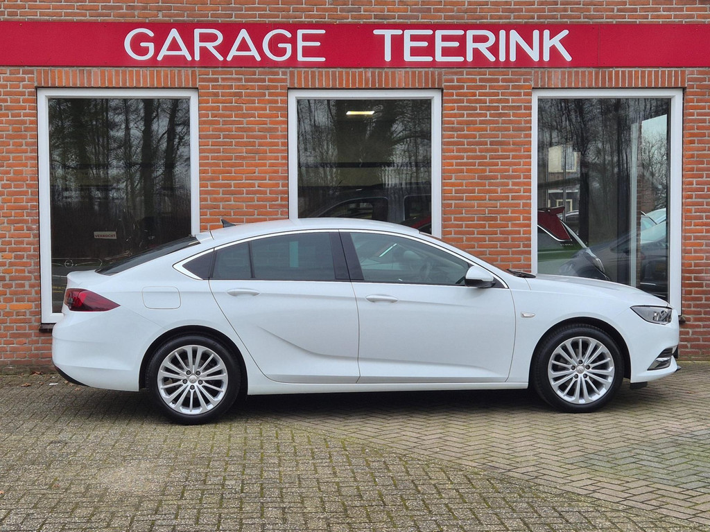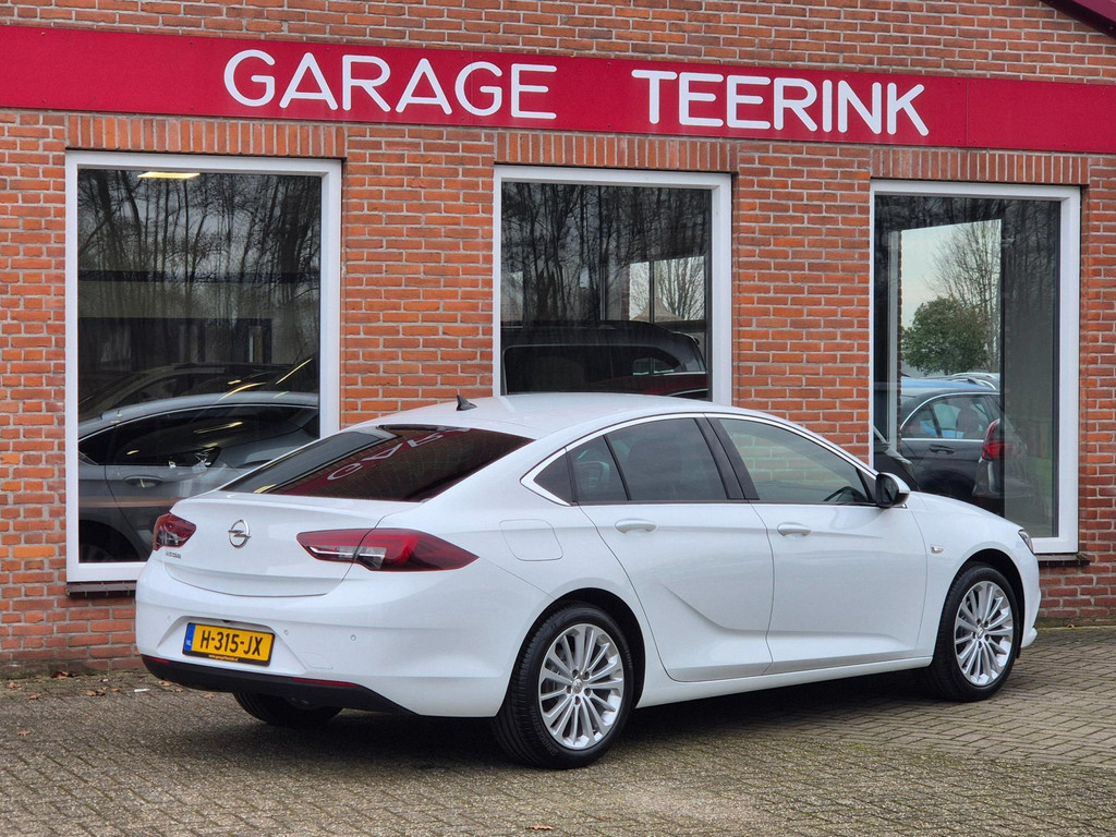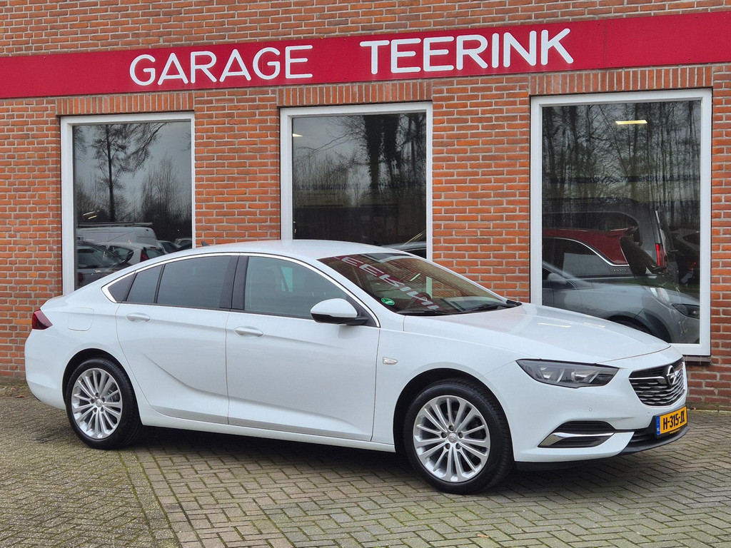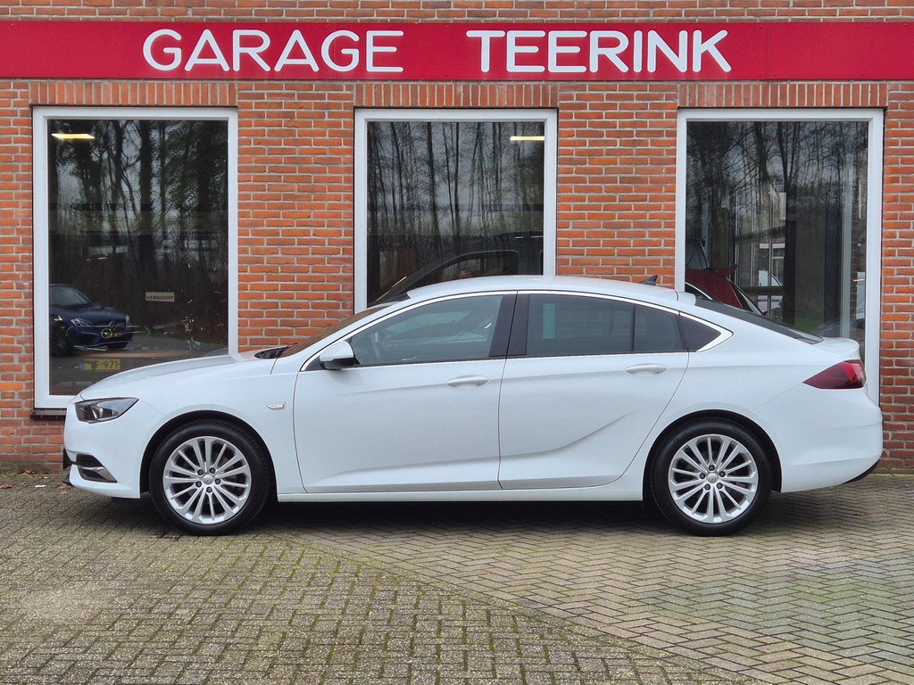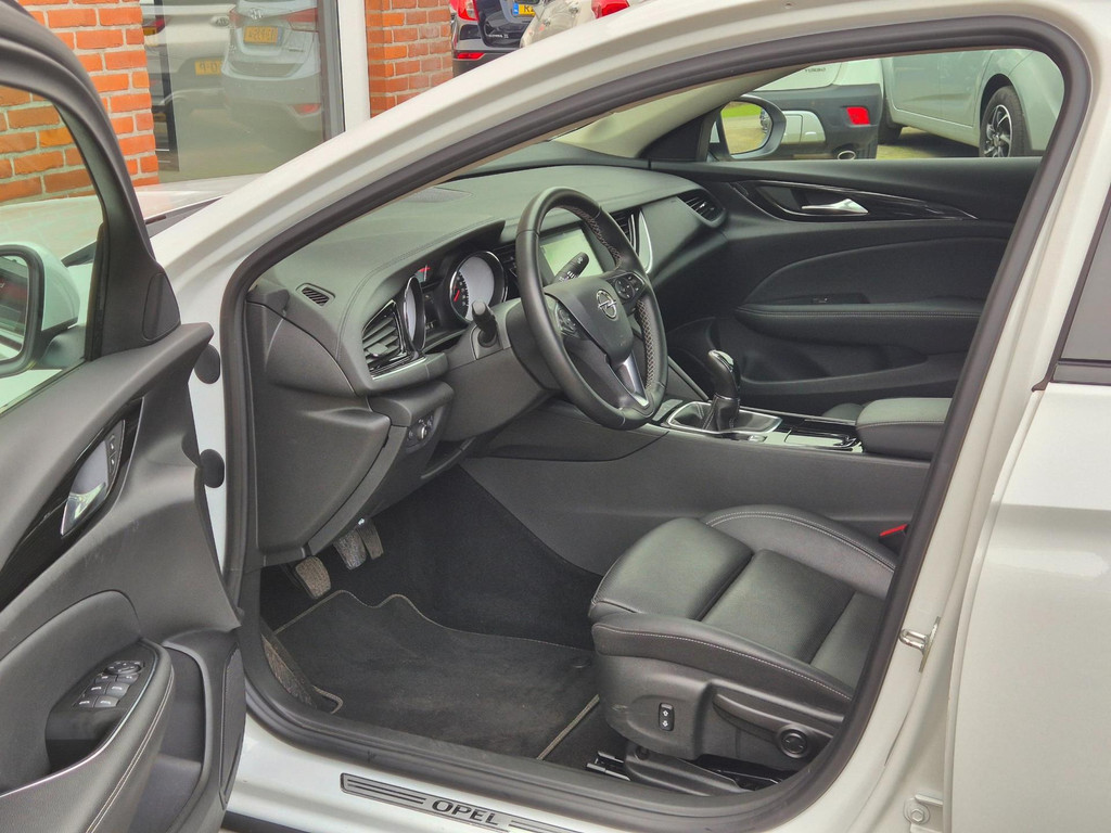 Mooie, en uiterst complete Opel Insignia Grand Sport 1.5 Turbo Business Executive van tweede eigenaar (eigenlijk 1 particuliere eigenaar). Frisse auto die onder andere is voorzien van climate control (automatisch geregelde airco), cruise control met snelheidsbegrenzer, elektrische ramen voor & achter, parkeersensoren voor & achter, achteruitrijcamera, regensensor, automatische dimlichten, in hoogte verstelbare AGR comfortstoelen met lederen bekleding & stoelverwarming, 18 inch lichtmetalen velgen, draadloze telefoonlader, verkeersbordherkenning, bots/volgafstand herkenning, dode hoek detectie, isofix bevestiging voor kinderzitjes, elektrisch wegklapbare trekhaak met 13 polige aansluiting en een origineel navigatiesysteem met bluetooth carkit, dab ontvanger, dubbele usb aansluiting, stuurbediening en Apple Carplay & Android Auto koppelmogelijkheden.