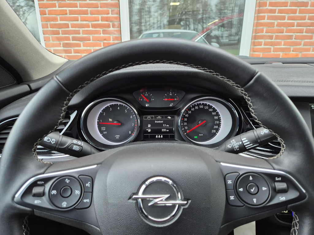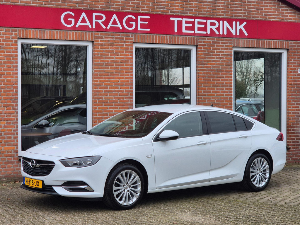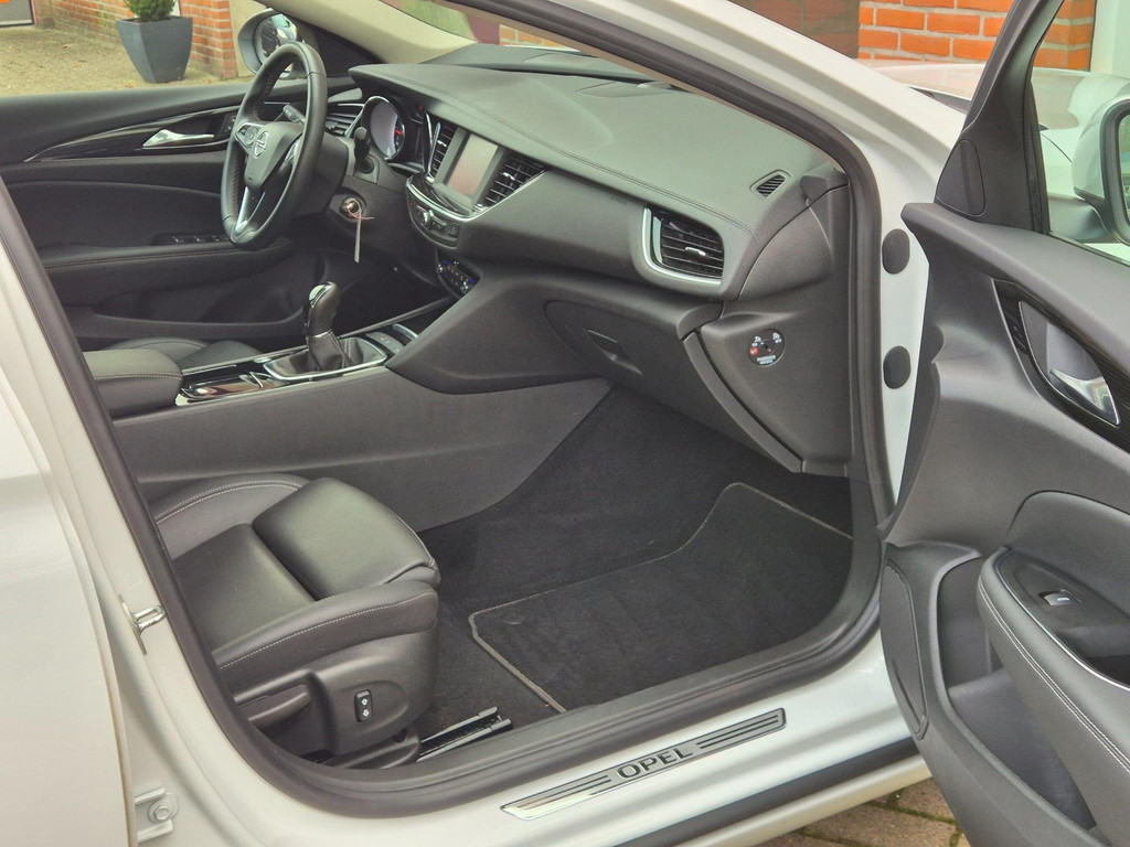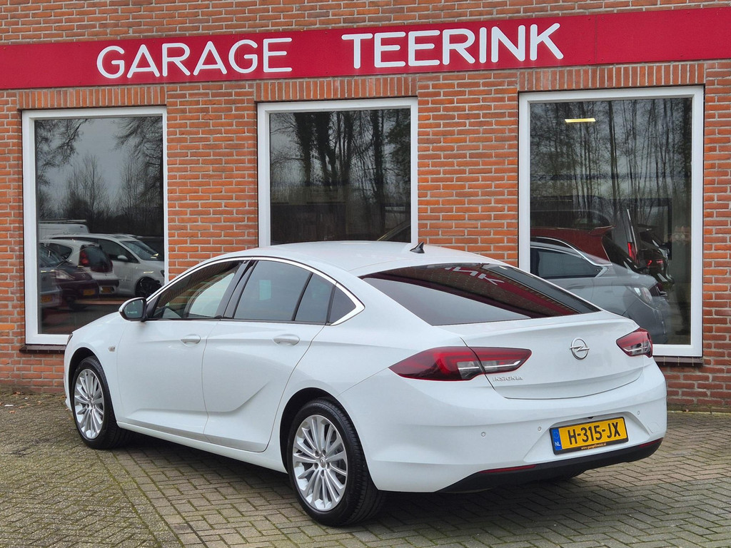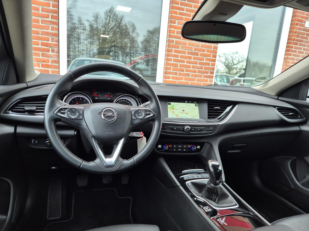 Mooie, en uiterst complete Opel Insignia Grand Sport 1.5 Turbo Business Executive van tweede eigenaar (eigenlijk 1 particuliere eigenaar). Frisse auto die onder andere is voorzien van climate control (automatisch geregelde airco), cruise control met snelheidsbegrenzer, elektrische ramen voor & achter, parkeersensoren voor & achter, achteruitrijcamera, regensensor, automatische dimlichten, in hoogte verstelbare AGR comfortstoelen met lederen bekleding & stoelverwarming, 18 inch lichtmetalen velgen, draadloze telefoonlader, verkeersbordherkenning, bots/volgafstand herkenning, dode hoek detectie, isofix bevestiging voor kinderzitjes, elektrisch wegklapbare trekhaak met 13 polige aansluiting en een origineel navigatiesysteem met bluetooth carkit, dab ontvanger, dubbele usb aansluiting, stuurbediening en Apple Carplay & Android Auto koppelmogelijkheden.