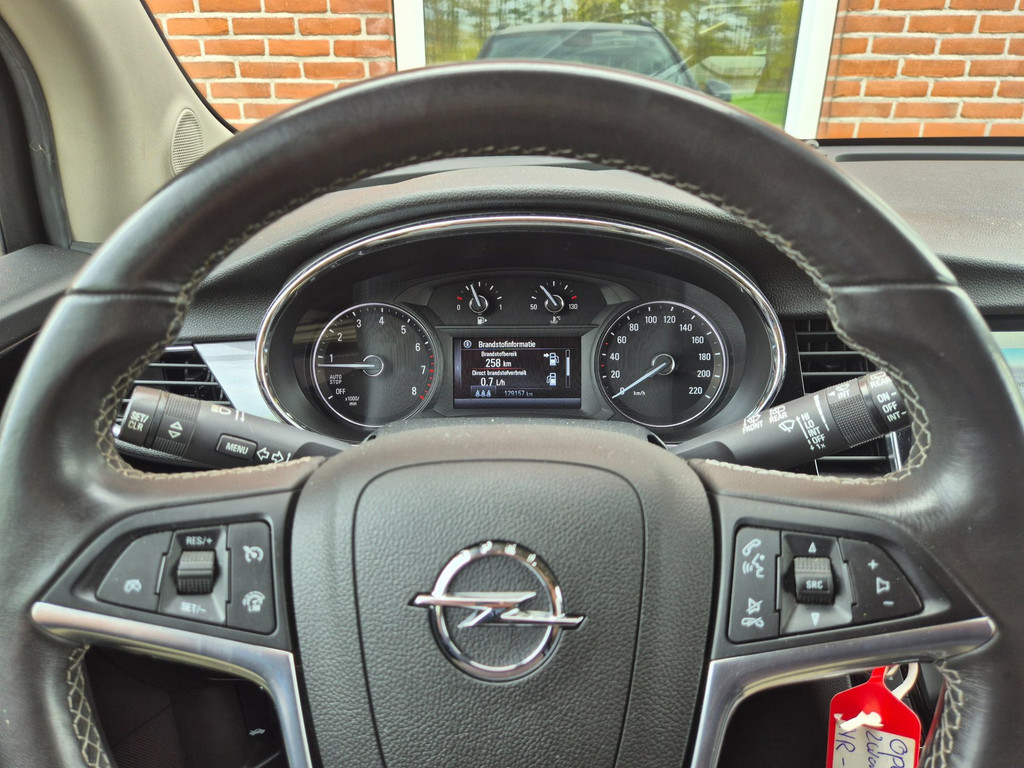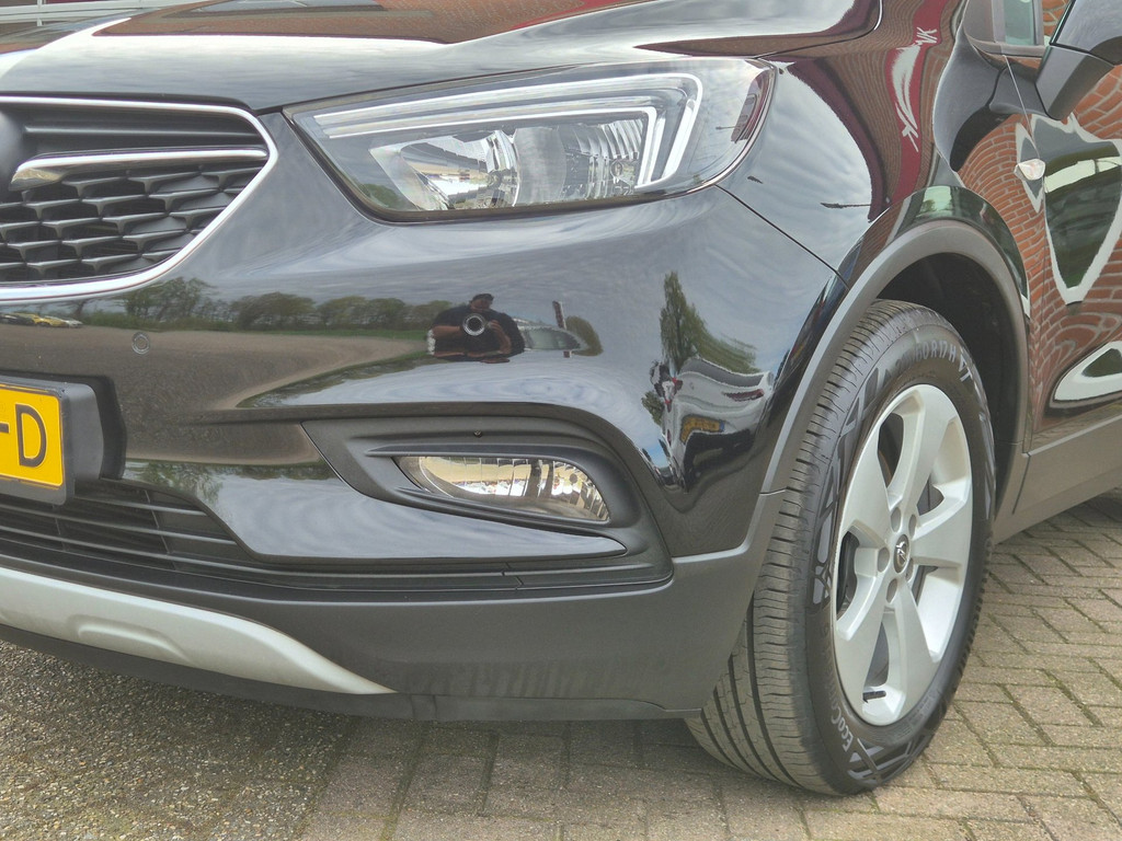 Mooie, 100% dealer onderhouden Opel Mokka X Business+ van eerste eigenaar. Keurige en complete auto die onder andere is voorzien van airco, cruise control met snelheidsbegrenzer, elektrische ramen voor & achter, centrale deurvergrendeling op afstand, regensensor, automatische dimlichten, parkeersensoren voor & achter, achteruitrijcamera, boordcomputer, in hoogte verstelbaar lederen stuur, in hoogte verstelbare AGR comfortstoelen, 17 inch lichtmetalen velgen, trekhaak met 13 polige aansluiting en een origineel navigatiesysteem met bluetooth carkit, dab ontvanger, aux/usb aansluiting en Apple Carplay & Android Auto koppelmogelijkheden.
