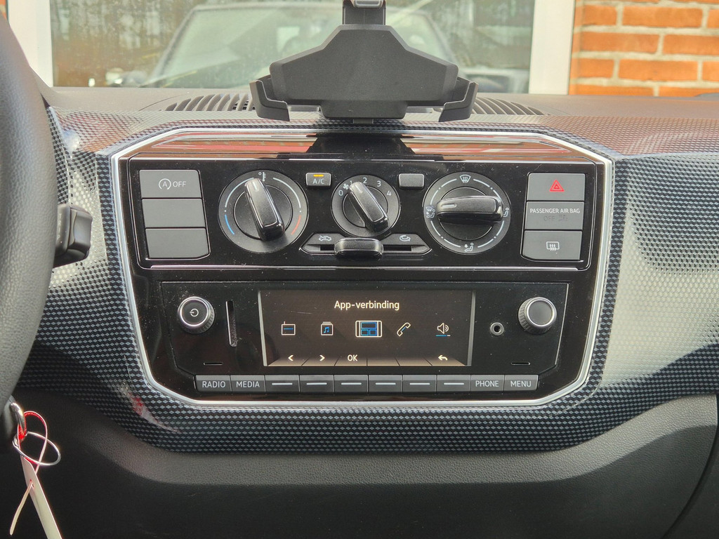Op de telefoon kan een Volkswagen app worden gedownload waarmee deze aan de radio gekoppeld kan worden. De telefoon werkt dan als boordcomputer, navigatiesysteem en carkit. Kaarten hiervoor zijn gratis te downloaden! De telefoon kan eenvoudig worden opgeladen door de usb poort achter de houder.